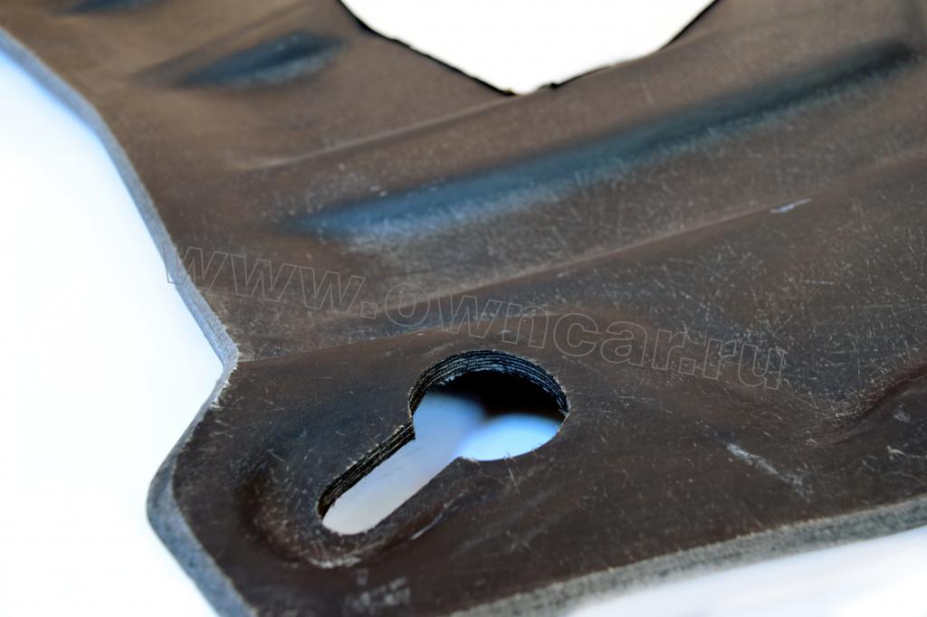Композитная защита картера по удельной прочности превосходит сталь в полтора раза, так же она не подвержена коррозии и имеет малый вес в сравнении с металлической. Она полностью повторяет конфигурацию оригинального пыльника автомобиля, обеспечивая максимальную защиту моторного отсека при минимальных потерях клиренса. Конструкция защиты снижает ударные нагрузки, распределяя их через точки крепления на силовые элементы кузова. При наезде на препятствие, защита из композита не деформируется как металлическая, а вновь принимает первоначальную форму. Важнейшим преимуществом композитной защиты является безопасность, так как при лобовом столкновении она лопается и не мешает двигателю уйти в низ.